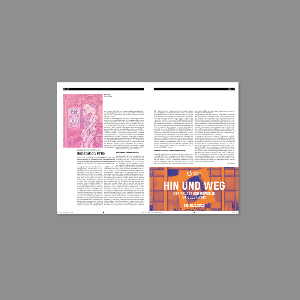 Illustration for SIEGESSÄULE for their article about a young queer generation's relationship with PrEP medication