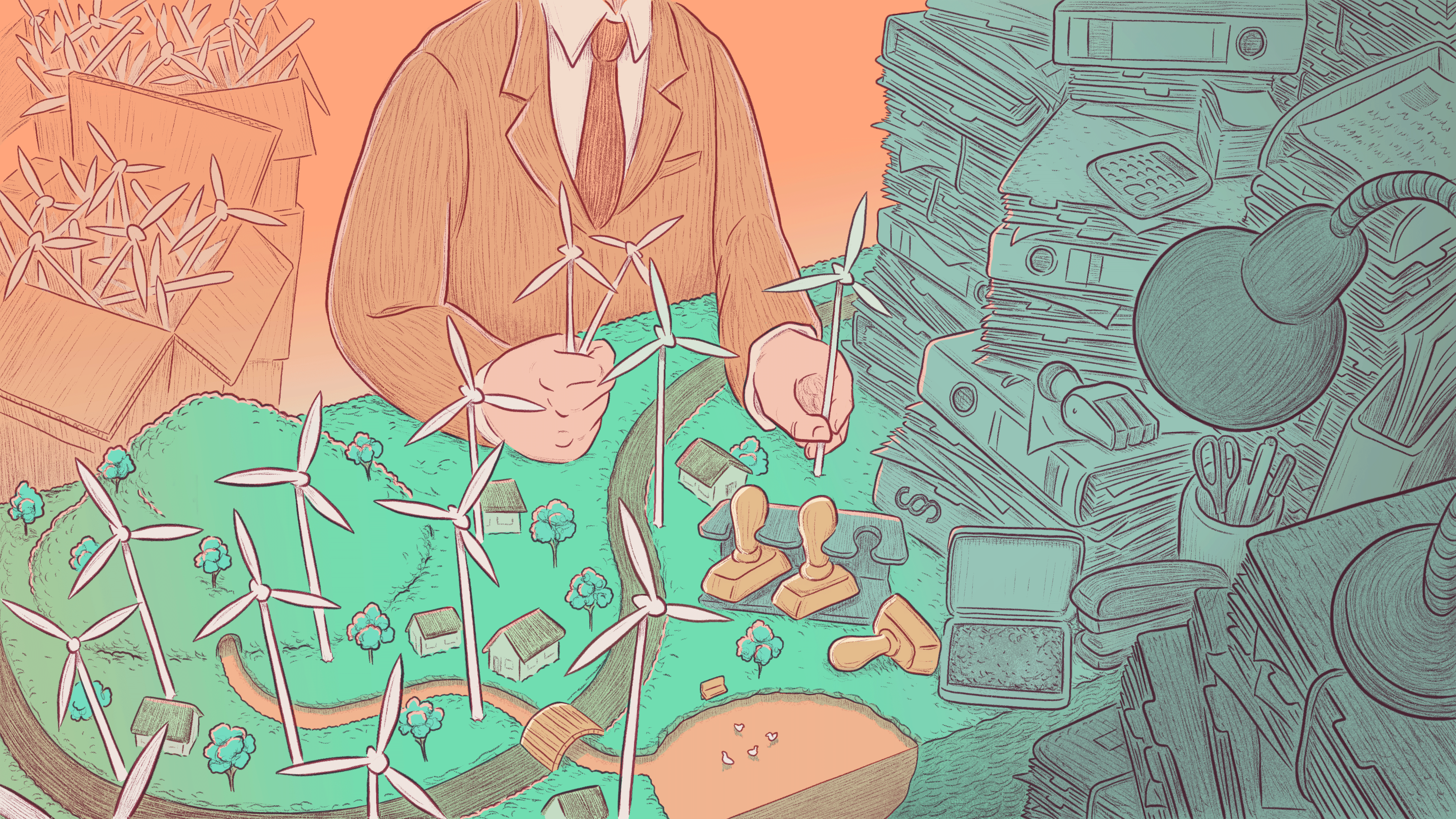 Illustration for ZEIT Online about the myriads of obstacles thwarting plans of expanding wind energy in Germany